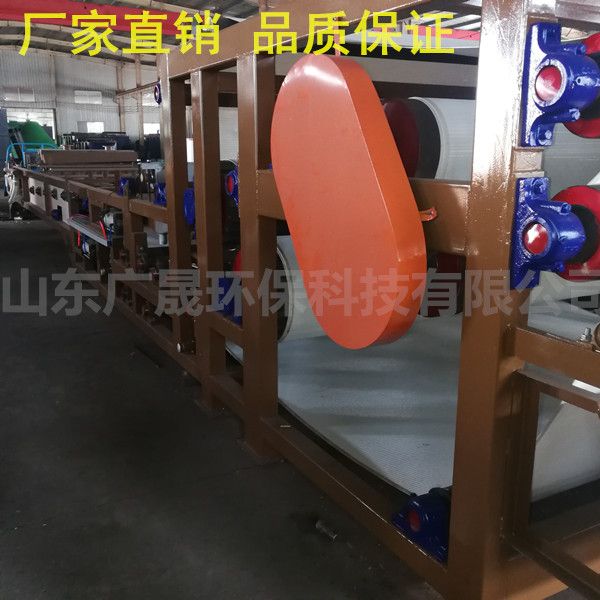 洗沙污泥处理设备由于榨辊采用不同的布置与组合可形成很多不同的机型。具有结构简单,脱水效率高,处理量大,能耗少,噪声低,自动化程度高,可以连续作业,易于维护等优点,其成本和运行费用比板框压滤机降低 百分之30 以上,因此成为城市污水处理的设备。